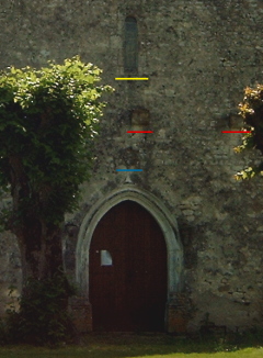 d'un pignon percé d'une petite fenêtre (soulignée en jaune) en plein